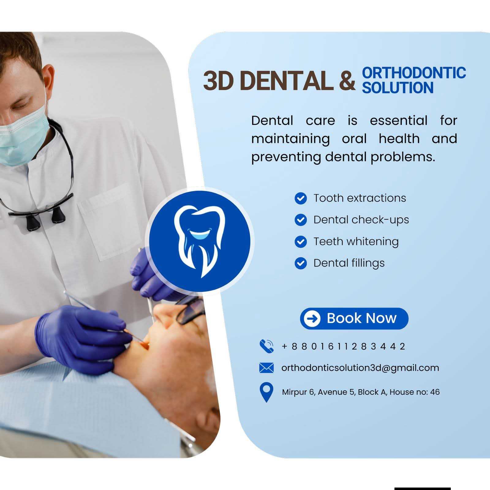 3D Dental Orthodontic Solution is a premier dental clinic located in Mirpur 6, Dhaka, dedicated to providing advanced oral healthcare with cutting-edge technology. Specializing in precision orthodontics and comprehensive family dentistry, the clinic ensures every patient achieves a healthy, confident smile through personalized treatment plans. As a leading provider of modern dental care in Mirpur, the clinic utilizes state-of-the-art diagnostic tools to offer pain-free and efficient procedures. Whether you require traditional braces, clear aligners, or routine dental maintenance, their expert team delivers professional excellence in a sterile and comfortable environment. Key Services & Features: Advanced Orthodontics: Specialized treatments including metal braces, ceramic braces, and invisible aligners for perfect teeth alignment. 3D Treatment Planning: Utilizing modern digital imaging for accurate diagnosis and predictable treatment outcomes. Dental Implants & Prosthetics: High-quality tooth replacement solutions to restore functionality and aesthetics. Cosmetic Dentistry: Professional teeth whitening, veneers, and smile makeovers to enhance your appearance. Pediatric & General Care: Comprehensive oral health services for children and adults, including painless extractions and root canals. Sterile Environment: Strict adherence to international sterilization protocols to ensure patient safety. For expert consultations, visit 3D Dental Orthodontic Solution in Mirpur 6 or book an appointment via their Official Facebook Page to start your journey toward a perfect smile.