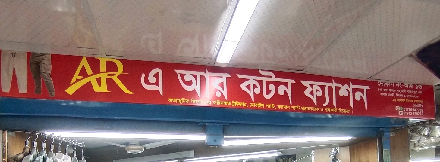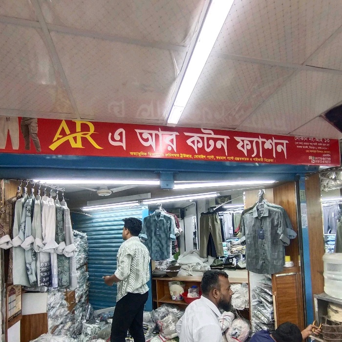 A.R Cotton Fashion in Mirpur 1 is a trusted manufacturer and wholesaler of high-quality ready-made garments, specialising in comfortable and stylish cotton apparel. The shop offers a wide range of clothing, including shirts, trousers, and casual wear suitable for men, women, and children. Retailers and bulk buyers can access durable fabrics, modern designs, and consistent stock at competitive prices. With a focus on quality production, customer satisfaction, and timely supply, A.R Cotton Fashion has become a preferred destination for wholesale and retail garment businesses in Dhaka.