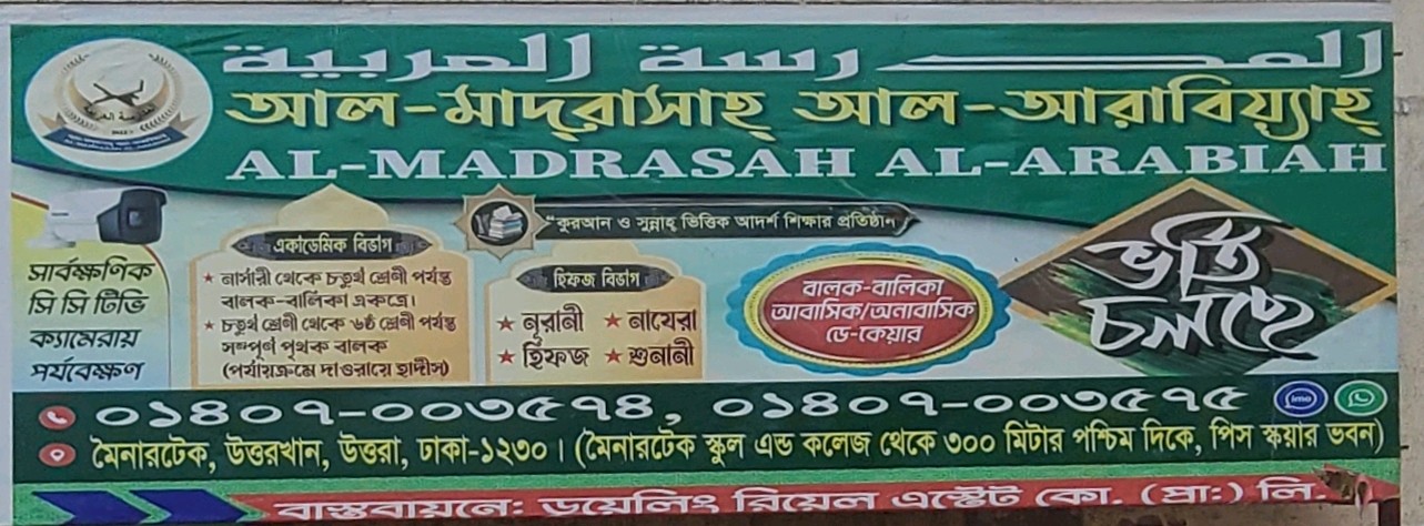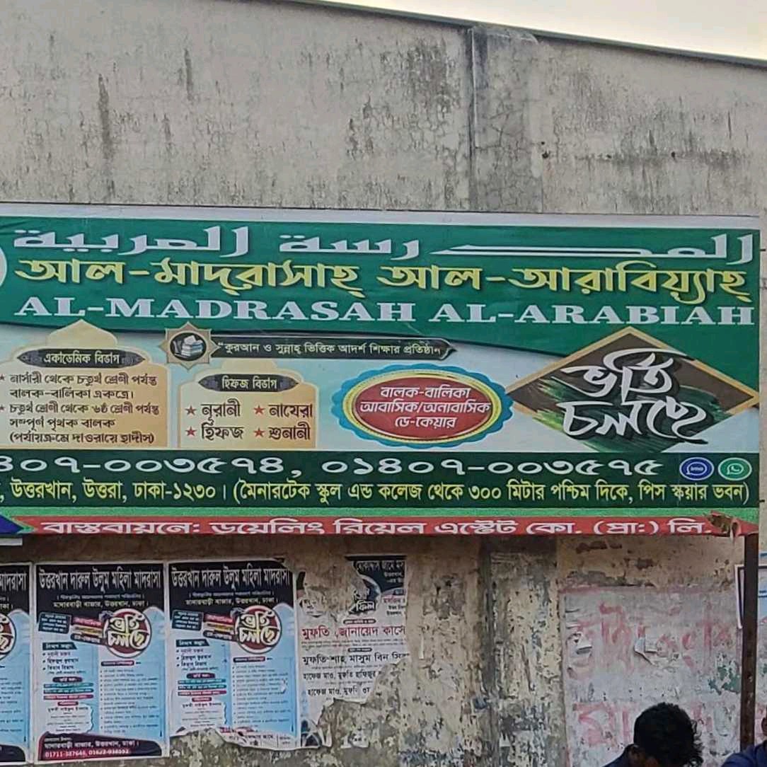 Al-Madrasah Al-Arabiah is an Islamic educational institution focused on Quran learning and religious studies. The madrasa aims to provide structured education with an emphasis on Islamic teachings, discipline, and moral development. It supports students in building strong foundational knowledge of Islam while encouraging ethical values and personal growth. Known for its disciplined environment and dedicated teaching approach, it is a respected institution for religious education in the local community.