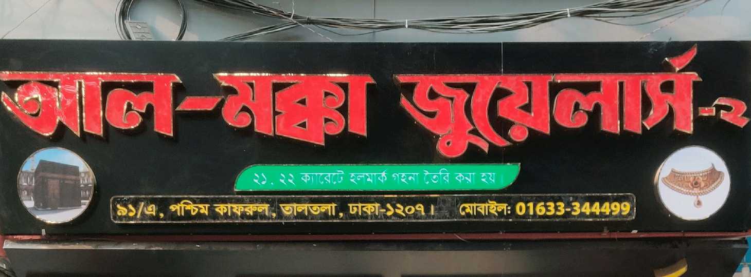 Al-Makkah Jewellers, located in Taltola, Dhaka, is a renowned jewellery shop offering a wide range of gold and silver ornaments for various occasions. The store features traditional and contemporary designs, including rings, necklaces, earrings, bangles, and chains, suitable for daily wear, weddings, and special celebrations. Customers can expect high-quality craftsmanship, durable materials, and intricate finishing in every piece. Al-Makkah Jewellers focuses on personalised service, helping clients choose jewellery that matches their style, preferences, and gifting needs. With a reputation for trust and elegance, the shop is a preferred destination for jewellery enthusiasts in the Taltola area.