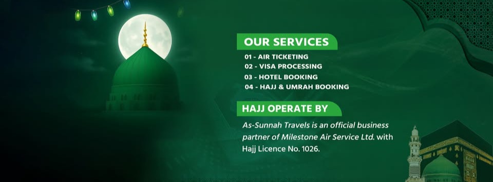 As-Sunnah Travels | Best Hajj & Umrah Agency in Bangladesh Experience a soul-stirring spiritual journey with As-Sunnah Travels, a premier Hajj and Umrah agency in Dhaka, Bangladesh. We provide seamless, Sunnah-inspired guidance to Makkah and Madinah, ensuring your comfort so you can focus entirely on your Ibadah. Why Pilgrims Trust As-Sunnah Travels? - Expert Shariah Guidance: Supervised by Professor Mokhtar Ahmad and Dr. Muhammad Saifullah Madani. - Flexible Packages: Affordable luxury and budget-friendly options. - Prime Logistics: Near-Haram hotels and hassle-free transport. - On-Ground Support: Dedicated 24/7 team in Bangladesh & Saudi Arabia. - - Book your Hajj or Umrah package today with your trusted partner for a blessed journey.