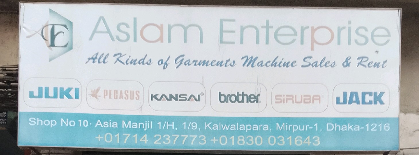 Aslam Enterprise in Mirpur 1 is a trusted provider of garments machinery, offering both sales and rental services for businesses in the apparel and textile industry. The company supplies industrial sewing machines, cutting machines, and other essential garment production equipment to support factories, tailoring units, and small clothing businesses. Customers can purchase machinery for permanent use or rent machines for temporary projects, providing flexibility and cost-effective solutions. Garments machinery suppliers like Aslam Enterprise help ensure smooth production, efficient workflow, and timely delivery of clothing products. The business focuses on quality equipment, reliable service, and convenient access for the local garments sector.