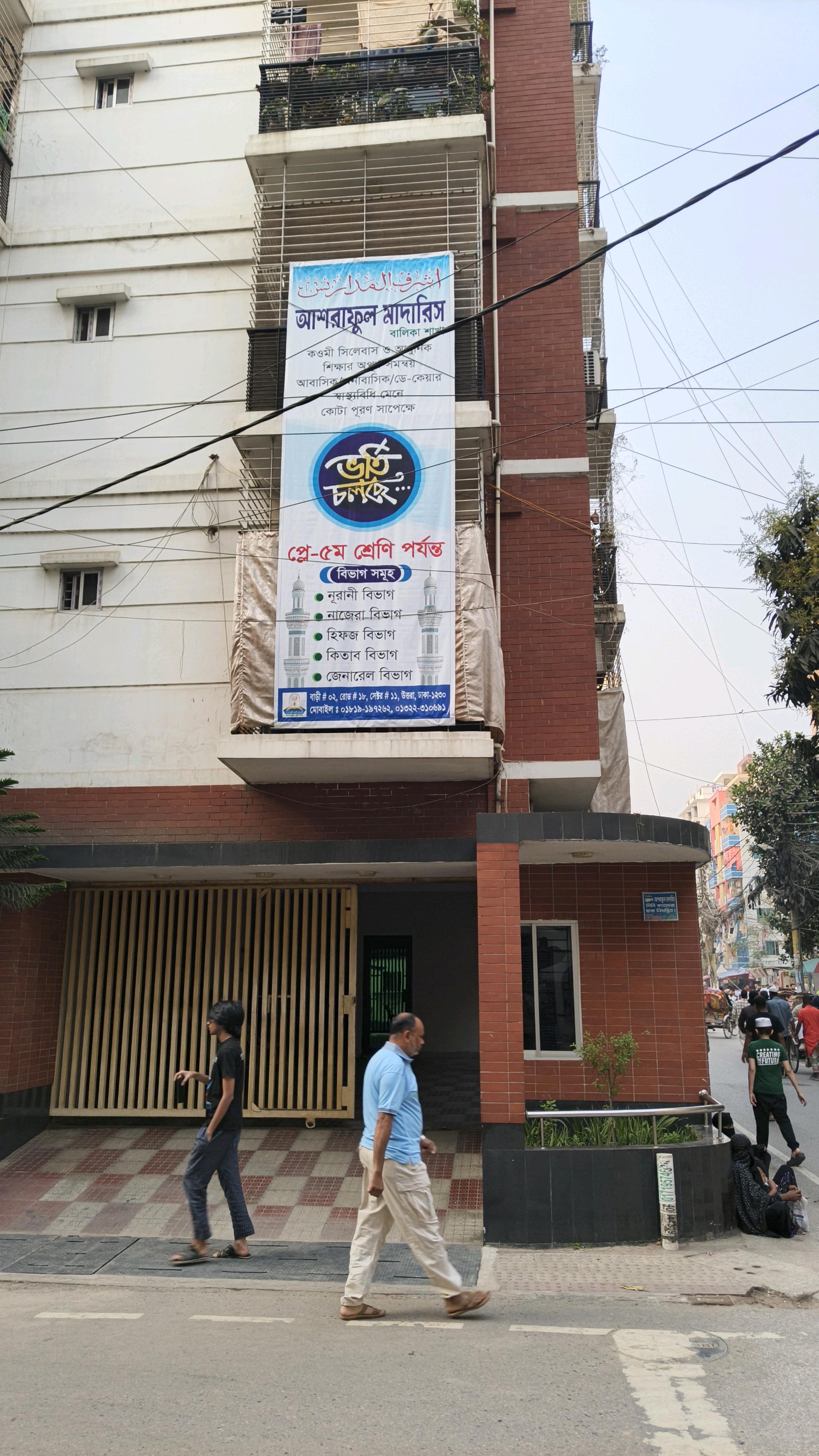Asraful Madaris (Girls) offers specialized Islamic education for female students in Sector 11, Uttara. It emphasizes religious knowledge alongside moral values and discipline.