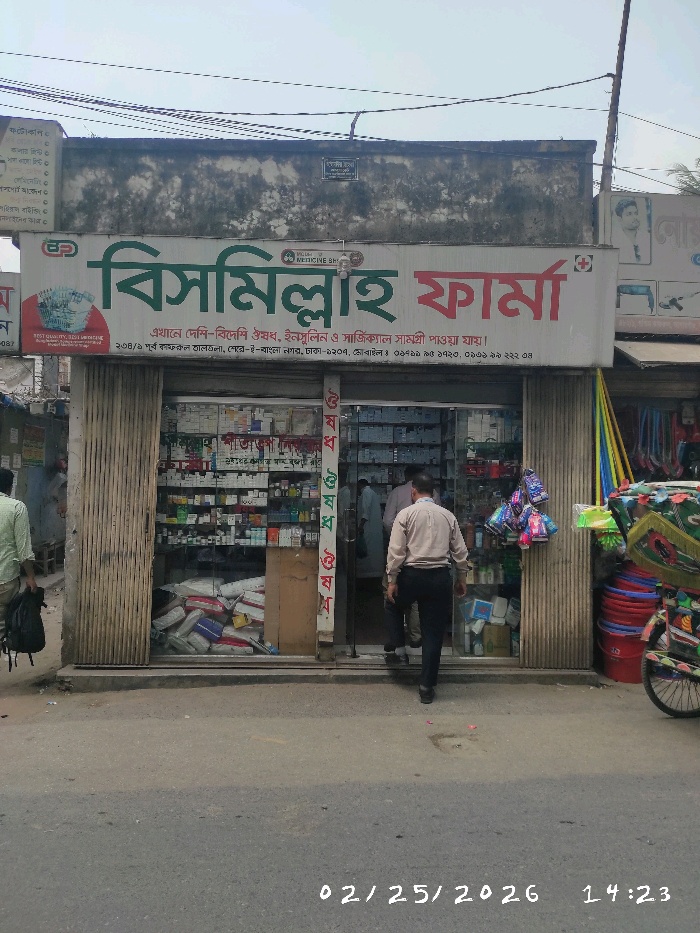 Bismillah Pharma is a trusted pharmacy offering a wide range of domestic and imported medicines in Dhaka. The store stocks essential pharmaceutical products including prescription medicines, over-the-counter drugs, insulin, and surgical supplies to meet various healthcare needs. Customers can also find health and wellness items to support daily medical requirements. Known for its attentive service and knowledgeable staff, Bismillah Pharma helps customers select the right medications and provides guidance on usage as advised by healthcare professionals. The pharmacy focuses on quality, safety, and timely availability of products, making it a dependable destination for residents and nearby clinics seeking reliable medical supplies.