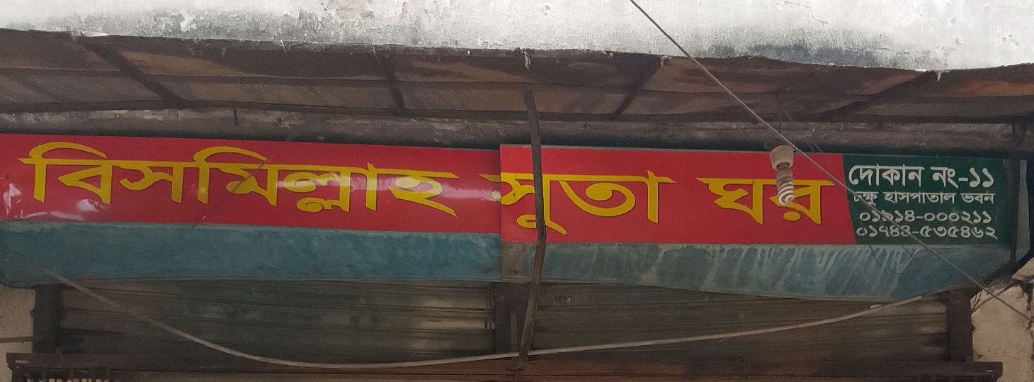 Bismillah Suta Ghar in Mirpur 1 is a local shop specialising in sewing threads and essential tailoring materials for clothing production and garment repair. The store typically supplies various types of sewing threads used for stitching, embroidery, and garment finishing. Tailors, boutique owners, and individuals visit such shops to purchase quality threads and small tailoring accessories required for daily sewing work. Thread shops play an important role in supporting local tailoring businesses and home-based clothing production by providing reliable sewing supplies. Bismillah Suta Ghar serves customers in the Mirpur area with convenient access to basic sewing materials and tailoring essentials.