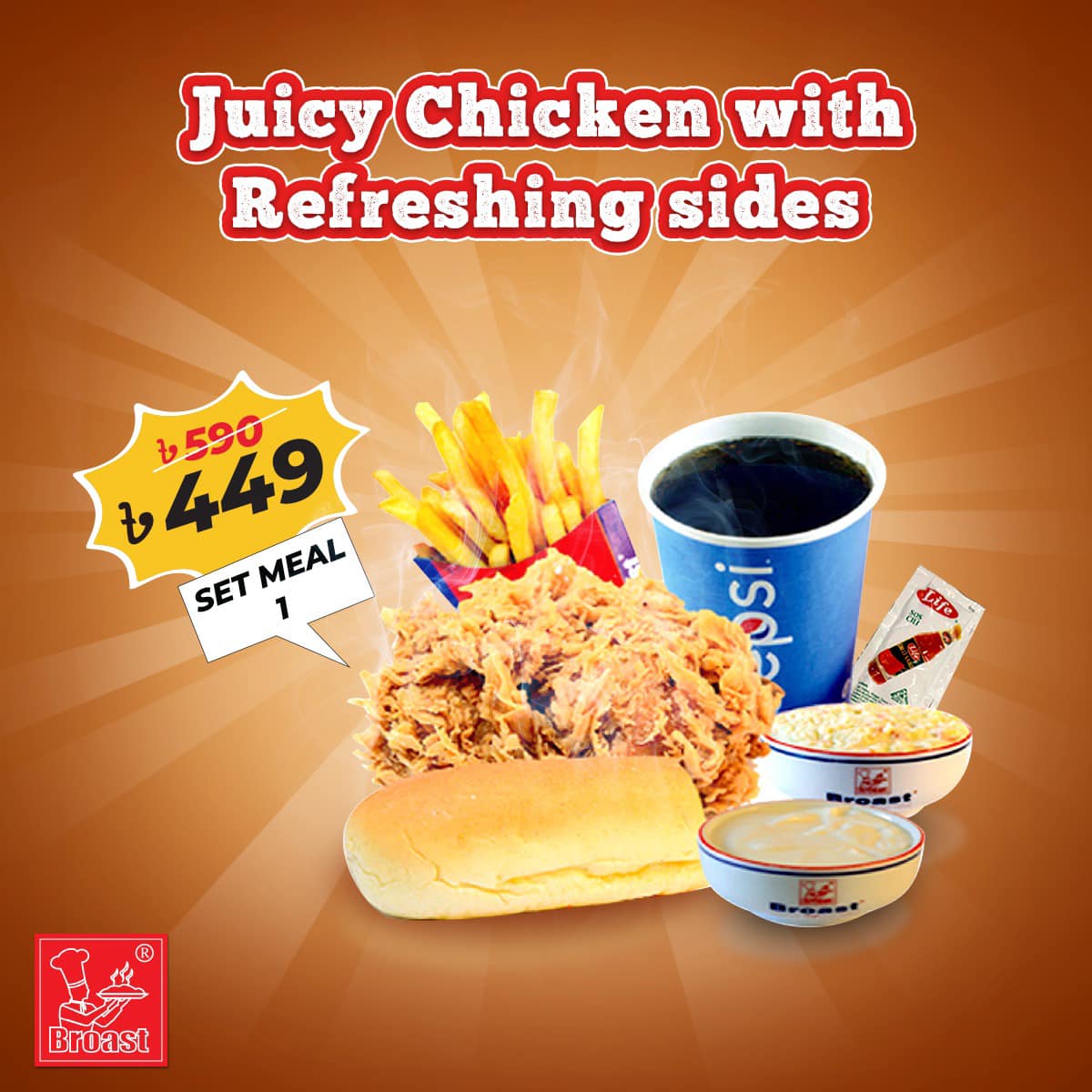 Broast Café – Serving You Real Taste, means using only the best ingredients, which are prepared and cooked to perfection, and serving you a variety of high-quality food.