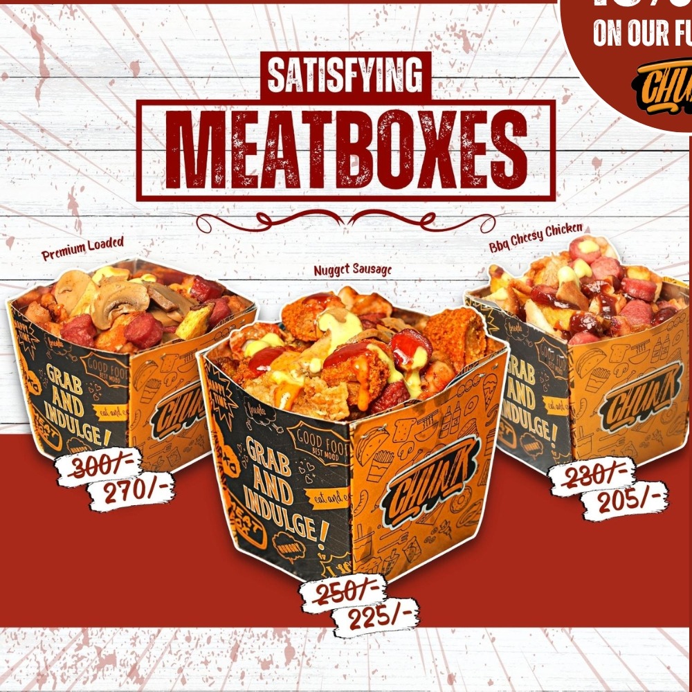 But we don't stop at burgers. Our menu also features a selection of delectable fries that perfectly complement our CHUNK of meat. Whether you prefer classic fries, seasoned fries, or loaded fries with tantalizing toppings, we've got you covered. Indulge in the crispy exterior and fluffy interior of our fries, adding an extra layer of deliciousness to your meal.