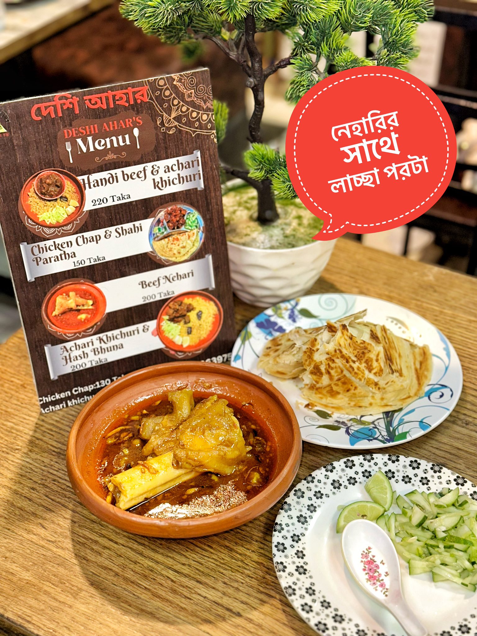 Authentic Bangladeshi dishes featuring classics such as kacchi, kala bhuna, chicken chap, beef nihari, and raj hasher mangsho — perfect for lunch or dinner.