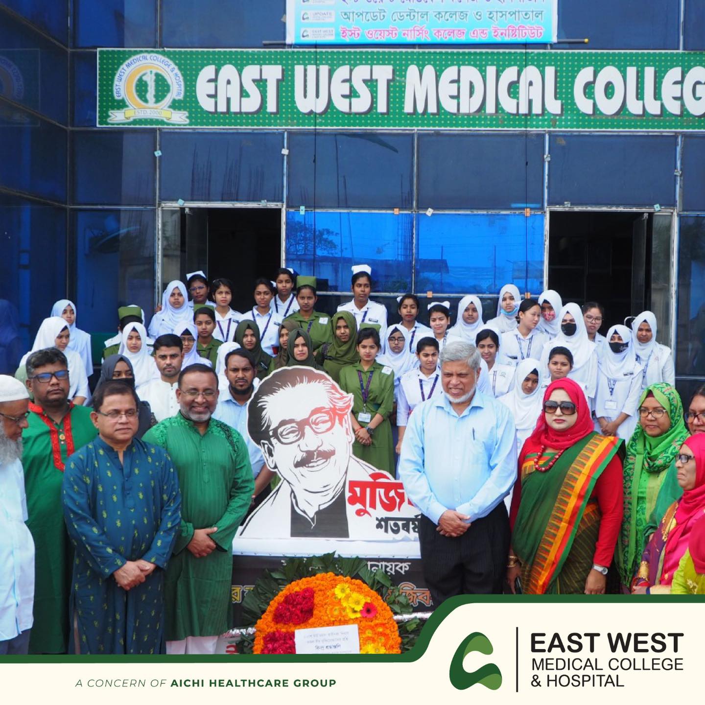 East-West Medical College & Hospital is a leading medical institute in Bangladesh. This institute is located at Aichi Nagar, JBCS Saroni, Khairtak, Turag, Dhaka, Bangladesh. It is situated on the bank of river Turag with natural flourishing surroundings and five kilometers away from Hazrat Shah Jalal International Airport. The college is to provide an excellent broad-based education with a focus on professional development for the students to equip them with the knowledge, skills, and attitude necessary not only to address the priority health problems of the community but also to acquire a firm basis for future training and studies. This institution is one of the organizations of the Aichi Medical group and it runs under Alim Foundation. Aichi group was established by Prof. Dr. Moazzem Hossain MBBS, STPS (England) Ph.D. (Japan) in the year 1996. Our founder chairman has studied at Nagoya University in Japan for 4 years with the support of the Bangladesh government and has earned Gold Medal for outstanding results in his field from the government of Japan. After returning back to Bangladesh, he started to fulfill his dream of taking the health care of Bangladesh to an international level. With the vow of developing our healthcare sector, this group now operates one medical college, dental university, nursing university, medical technology institute, and two hospitals.
