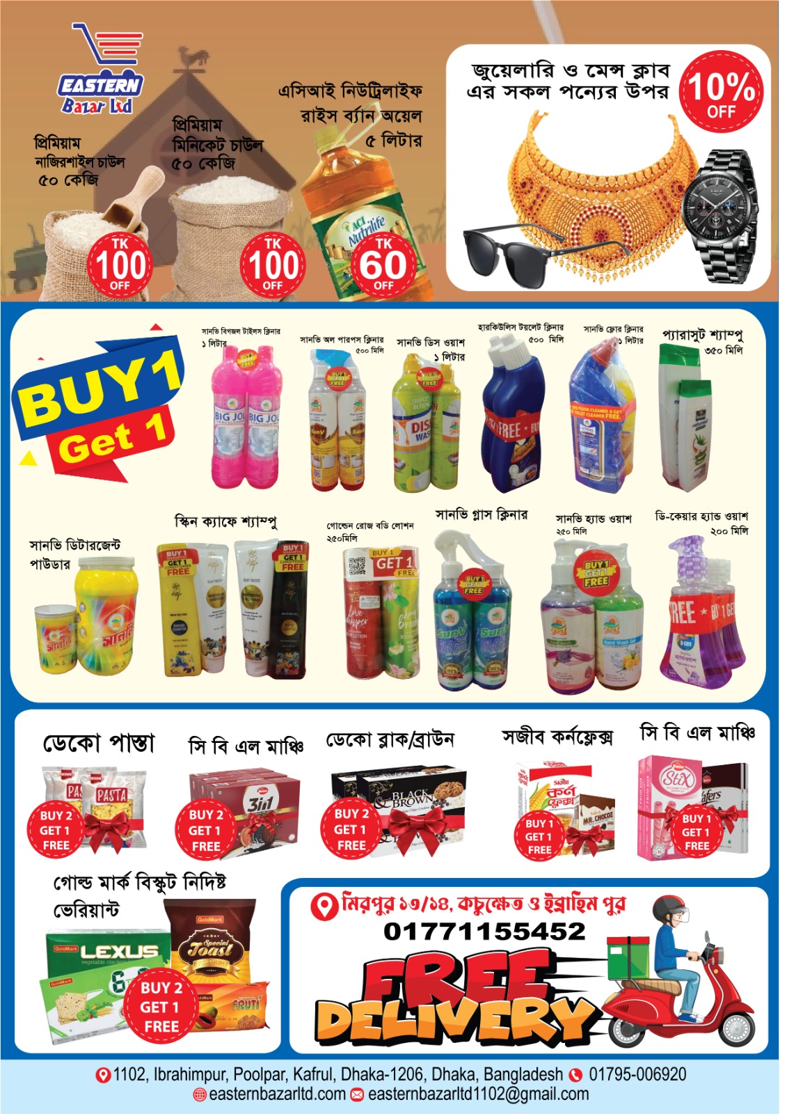 Located in the bustling heart of Kachukhet, Dhaka, Eastern Bazaar Ltd. is a premier departmental store offering a wide range of quality products under one roof. Whether you’re shopping for daily groceries, household essentials, beauty products, baby care items, or lifestyle accessories, Eastern Bazaar Ltd. ensures exceptional variety, affordable pricing, and a seamless shopping experience. Designed for convenience, the store caters to families, working professionals, and local businesses looking for trusted brands and fresh products in a clean, well-organized environment.
