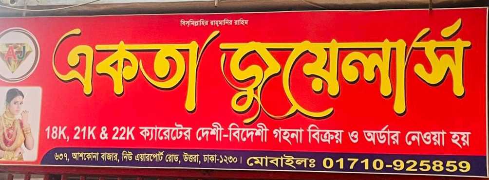 Ekota Jewelers is a well-known jewellery store offering a wide range of finely crafted gold, silver, and imitation ornaments designed to suit various tastes and occasions. The business is dedicated to providing high-quality jewellery that reflects elegance, tradition, and modern style. With a strong focus on authenticity and craftsmanship, each item is carefully designed to meet customer expectations in both beauty and durability. Located in a convenient area, Ekota Jewelers serves local customers with reliable service and fair pricing, making it a trusted name for wedding jewellery, gifts, and personal collections. The shop is recognised for its professional approach, helping customers choose the right designs based on preference and budget. Over the years, it has built a strong reputation for trust, customer satisfaction, and quality assurance in the local jewellery market.