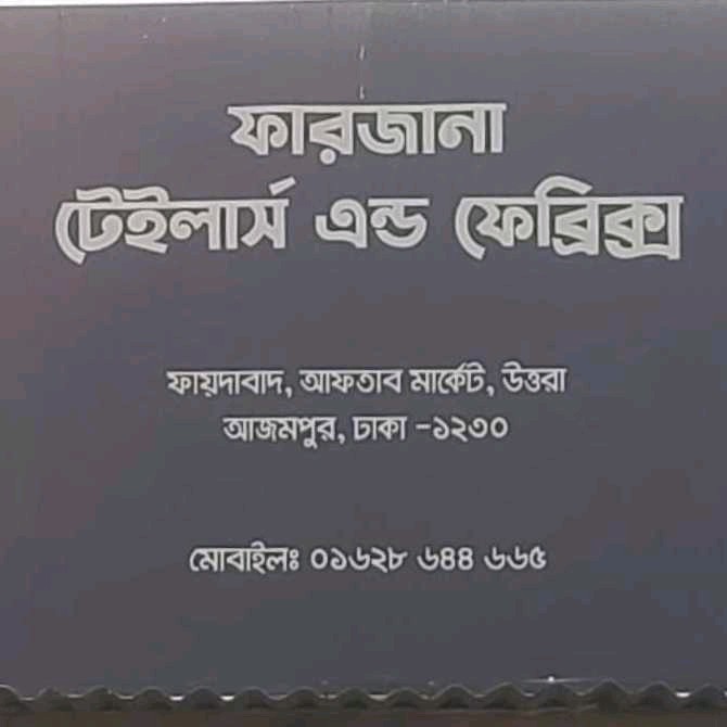 Farjana Tailors & Fabrics is a trusted tailoring shop offering personalised stitching services along with a wide range of fabrics for men, women, and children. The business focuses on neat stitching, accurate fitting, and versatile designs that range from simple daily wear to elegant outfits for special occasions. It ensures comfort, durability, and style by combining quality fabrics with skilled tailoring craftsmanship. Customers can select fabrics and design preferences in one place, making the process convenient and efficient. With attention to detail, timely delivery, and affordable pricing, Farjana Tailors & Fabrics is a reliable choice for complete clothing and tailoring needs.