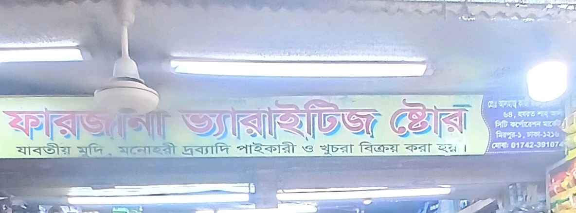Farzana Varieties Store is a trusted general store offering a comprehensive selection of everyday necessities. The store provides groceries, household items, and various daily-use products, catering to both retail and wholesale customers. With a focus on quality, affordability, and customer satisfaction, Farzana Varieties Store ensures a convenient and reliable shopping experience. Known for its well-stocked shelves and friendly service, the store is a preferred destination for families, small businesses, and individuals seeking essential products for daily use.