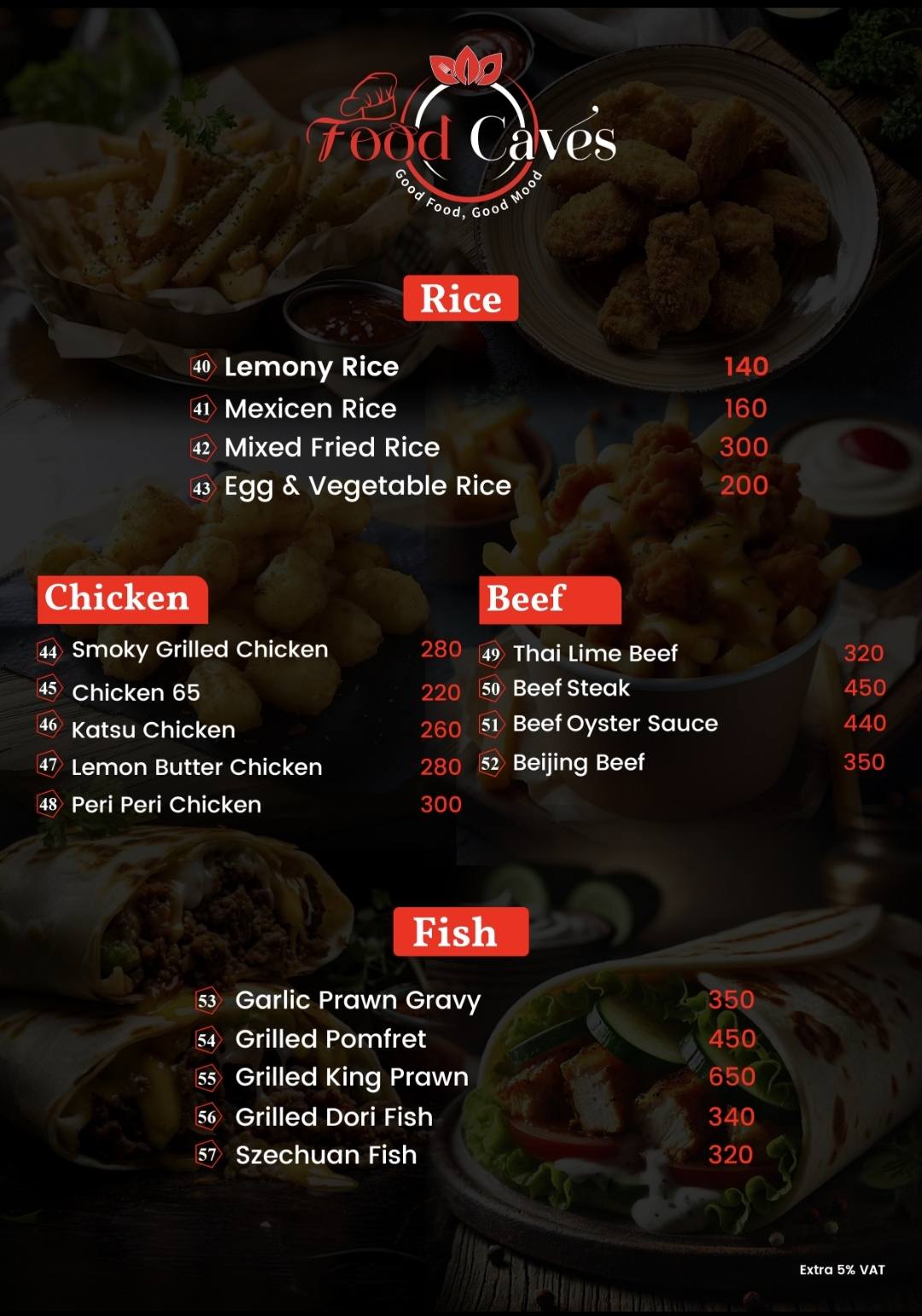 Food Caves is a popular fast-food restaurant offering a delicious range of freshly prepared meals and snacks that cater to every taste. Known for its flavourful menu and friendly atmosphere, the restaurant is a favourite choice for students, families, office workers, and groups of friends looking for satisfying quick bites or relaxed dining. With a focus on quality, hygiene, and value, Food Caves consistently serves meals that keep customers coming back for more.