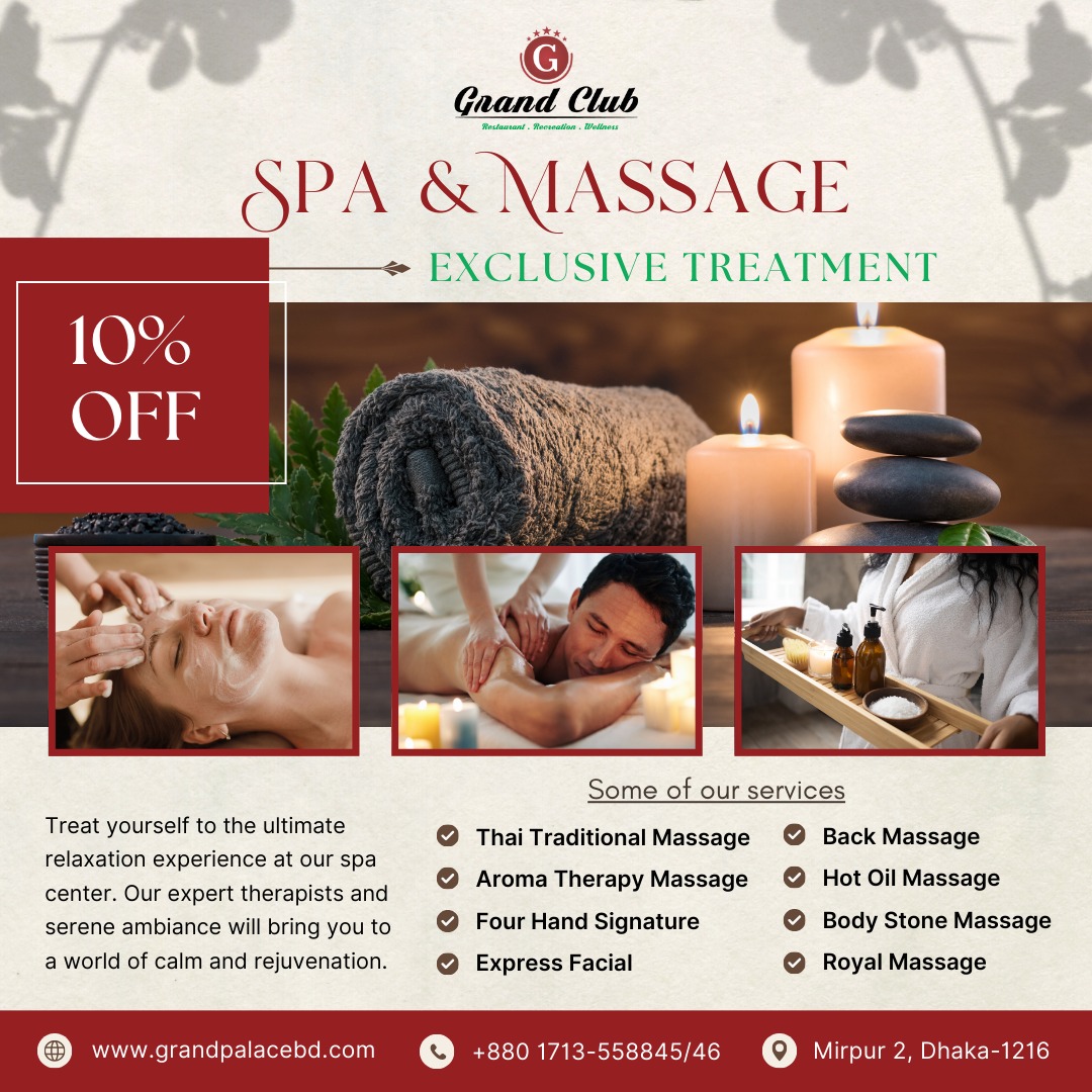 Grand Club Mirpur, a distinguished establishment under the Grand Palace Hotel & Resorts Ltd., offers a comprehensive range of premium facilities designed to cater to both leisure and wellness enthusiasts. Strategically situated opposite the National Swimming Complex, near Circle-10 in Mirpur, Dhaka, this international-standard club ensures accessibility and convenience for its patrons.