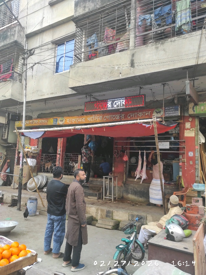 Haruner Khashir Goster Dokan is a trusted local butcher shop specialising in high-quality goat meat and mutton for the community. The shop offers fresh, hygienically prepared meat suitable for daily cooking, festive meals, and special occasions. Customers can choose from a variety of cuts to meet their culinary needs, ensuring both flavour and quality in every purchase. Known for its clean environment, friendly service, and fair pricing, Haruner Khashir Goster Dokan has become a dependable destination for families seeking fresh and tender goat meat. The shop consistently provides reliable meat products to satisfy local customers.