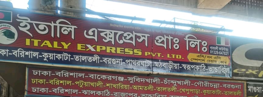 Italy Express Pvt. Ltd. provides dependable intercity bus services connecting Dhaka with Barishal, Patuakhali, Kuakata, Barguna, and surrounding coastal regions. Offering both AC and non-AC coach options, the service ensures comfortable and safe long-distance travel for passengers. With extensive route coverage including Bakerganj, Amtali, Taltoli, Patharghata, Jhalokathi, Rajapur, and Bhandaria, it supports smooth connectivity across southern Bangladesh. Known for organised scheduling and passenger-focused operations, Italy Express delivers a reliable travel experience for business trips, tourism, and daily commuting across coastal and riverine areas.