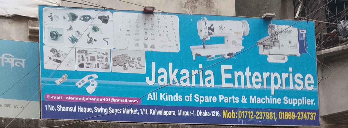 Jakaria Enterprise in Mirpur 1 is a specialised supplier of garments machinery and spare parts, serving the needs of the apparel and textile industry. The business provides a wide range of industrial sewing machines, cutting machines, and essential spare parts required for garment production and maintenance. Customers including garment factories, tailoring units, and small clothing businesses rely on Jakaria Enterprise for durable equipment and reliable components that ensure smooth workflow and minimal downtime. Suppliers like Jakaria Enterprise play a crucial role in supporting the garments sector by offering quality machinery, timely delivery, and professional service for efficient manufacturing operations.