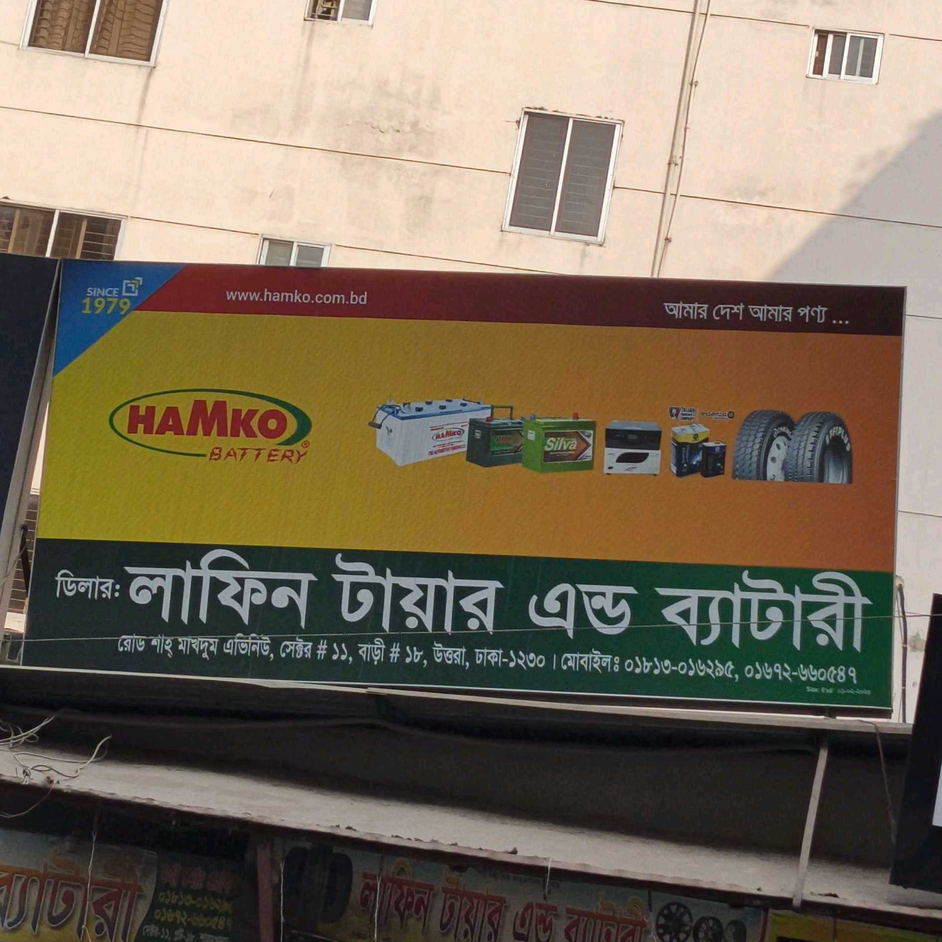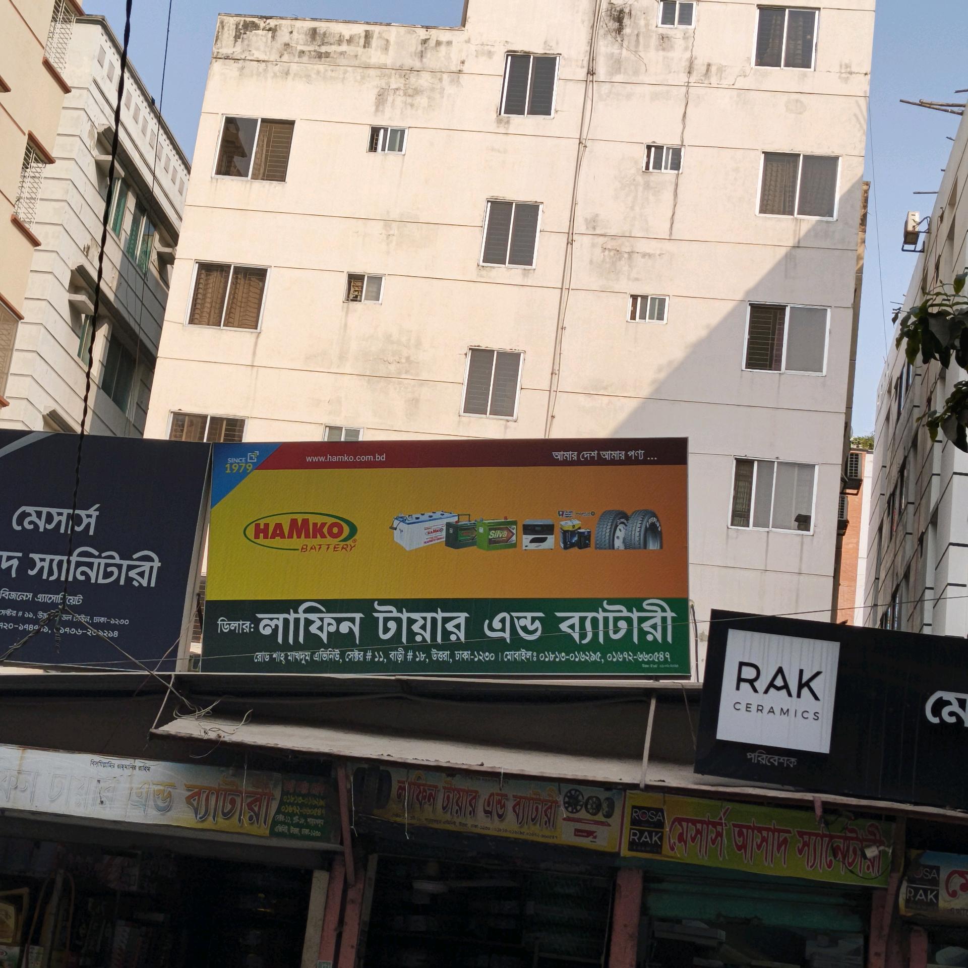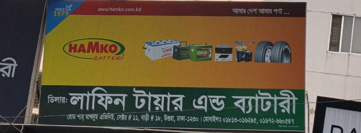 Lafin Tire and Battery supplies vehicle tires and batteries in Uttara, Dhaka, serving private and commercial vehicle owners.