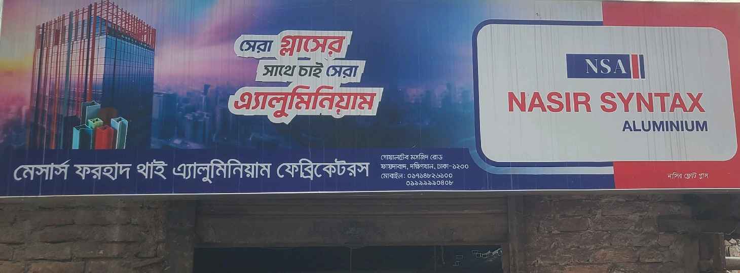 M/S Forhad Thai Aluminum Fabricators is a dependable workshop specialising in aluminium fabrication and repair solutions for both residential and commercial properties. The business is known for quality workmanship, durable materials, and precise finishing that ensures long-lasting performance. Services include fabrication and repair of aluminium doors, windows, frames, partitions, and other structural fittings. Each project, whether a small repair or full installation, is completed with careful measurement, proper fitting, and attention to detail. With skilled technicians and reliable service standards, the workshop focuses on delivering strong, neat, and cost-effective aluminium solutions tailored to customer requirements.