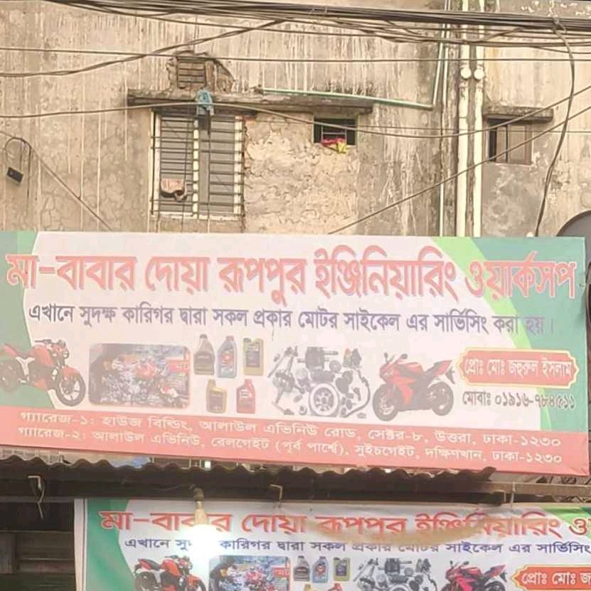 Ma-Babar Doa Ruppur Engineering Workshop provides dependable motorcycle servicing and repair services for riders who want reliable performance and safety on the road. The workshop focuses on careful inspection, skilled mechanical work, and the use of quality spare parts to keep motorcycles running smoothly. From routine maintenance to repair work, every service is handled with attention to detail and practical expertise. Customers value the workshop for its honest service, efficient solutions, and reasonable pricing, making it a trusted place for regular bike care and maintenance.