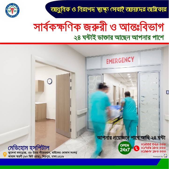Medi Home Hospital, located at 38 Pirerbag in Mirpur, Dhaka, is a family-friendly healthcare facility offering comprehensive medical services, including a digital diagnostic center.
