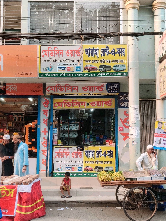 Medicine World, located in Taltola, Dhaka, is a reliable pharmacy offering a comprehensive range of medicines and healthcare products. The store provides local and imported prescription and over-the-counter drugs, ensuring customers have access to essential healthcare solutions. In addition, Medicine World stocks vitamins, supplements, and personal care items to support overall wellness. Known for its professional service, quality products, and customer-focused approach, the pharmacy serves the local community with safe, convenient, and dependable healthcare options.