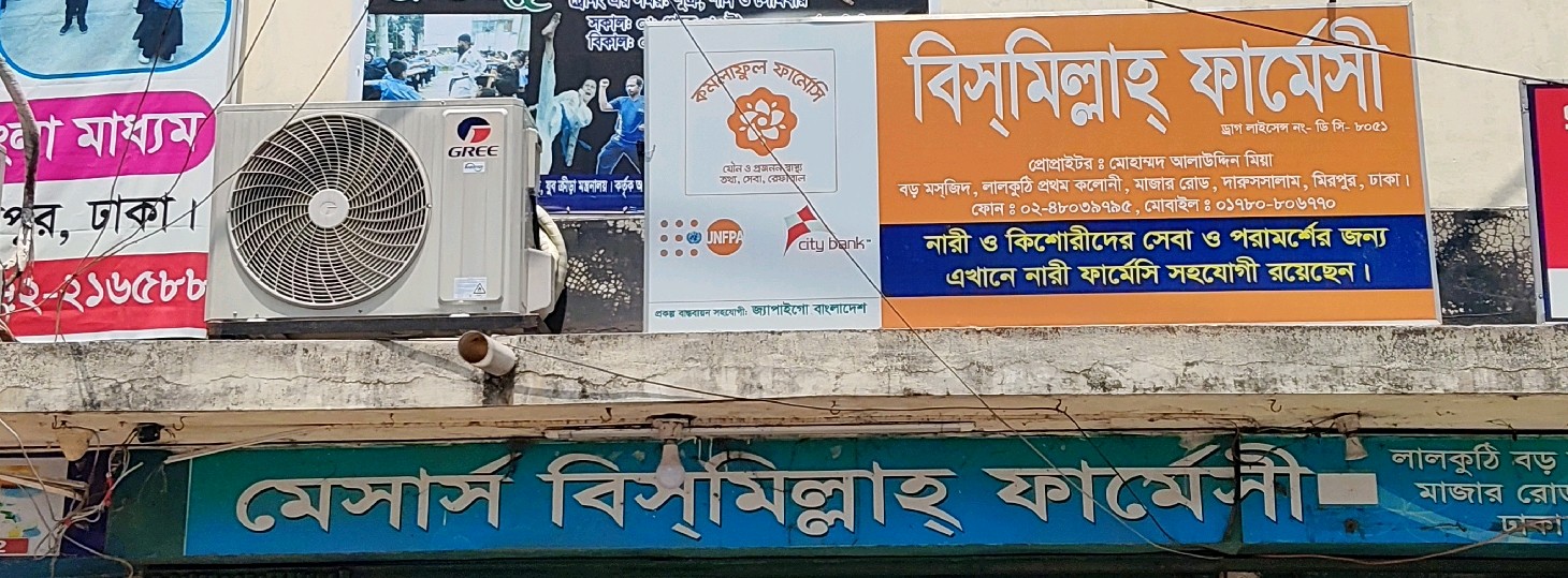 Messrs Bismillah Pharmacy is a trusted local pharmacy in Gabtali providing a wide range of essential medicines and healthcare products for everyday needs. The pharmacy is known for offering authentic prescription drugs, over-the-counter medicines, and basic health and wellness items at affordable prices. With a focus on quality service and proper product handling, it ensures safe and reliable pharmaceutical support for the community. Special support is available through female pharmacy assistants who provide guidance and consultation for women and adolescent girls in a comfortable environment. Its convenient location makes it a dependable choice for family healthcare needs.