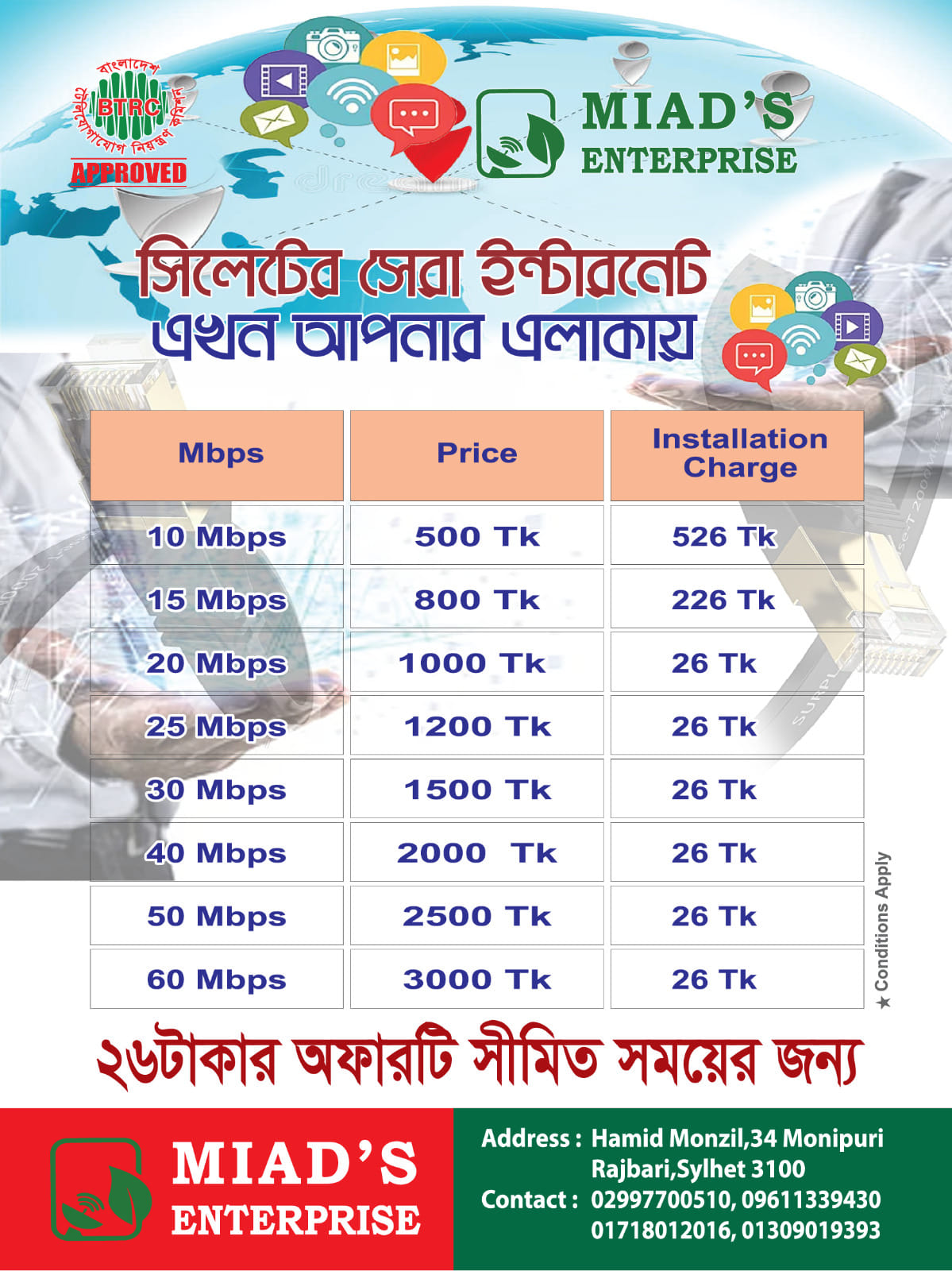 Miad's Enterprise is a major provider of dependable, high-speed internet access. Miad's Enterprise seeks to provide great internet services to household and corporate users by focusing on customer satisfaction and technology developments.