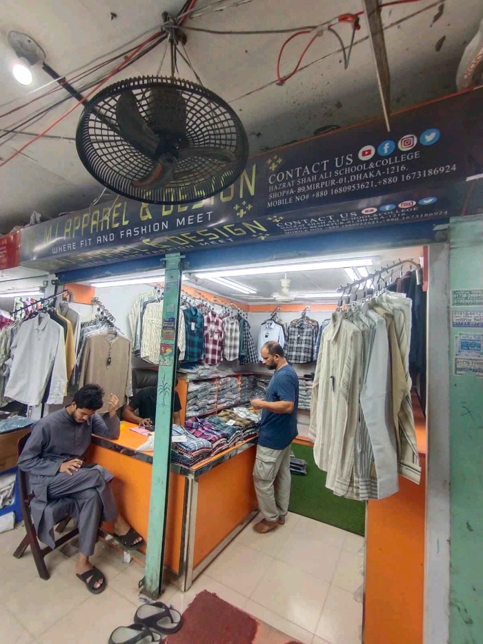 Miapparel & Design in Mirpur 1 is a dedicated men’s clothing store offering a wide assortment of ready‑made garments. The shop specialises in modern shirts, trousers, jeans, and casual wear crafted from quality fabrics to ensure durability, comfort, and contemporary style. Customers can explore fashionable collections suitable for everyday outfits, office attire, and special occasions. With a focus on quality products, competitive pricing, and attentive customer service, Miapparel & Design has become a reliable destination for men’s fashion in Dhaka.