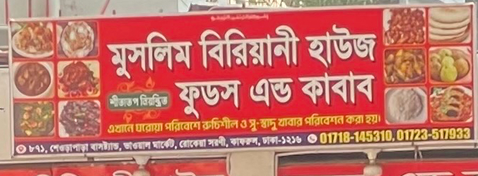 Muslim Biriyani House in Shewrapara is a popular destination for biriyani lovers seeking authentic flavour, generous portions, and consistent quality. Known for its aromatic rice, tender meat, and perfectly blended spices, this biriyani spot has become a favourite among locals and office-goers in the area. Whether you're craving a hearty lunch, a fulfilling dinner, or a quick takeaway, Muslim Biriyani House offers a satisfying experience every time.