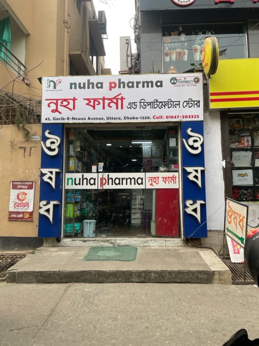 Located on Gareeb-e-Newaz Avenue in Uttara, Dhaka, Nuha Pharma is a dependable retail pharmacy offering essential healthcare products and services for the local community. With a focus on quality, accessibility, and customer satisfaction, Nuha Pharma serves residents, nearby offices, and visitors with a wide range of pharmaceutical solutions.