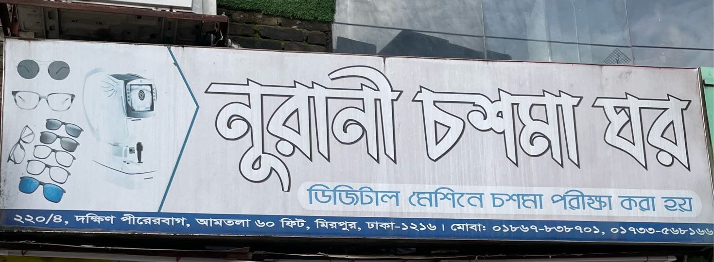 Nurani Chosma Ghor is a leading optical shop in Mirpur, dedicated to providing high-quality eyewear and professional eye care solutions. With a wide range of stylish frames, branded sunglasses, and prescription lenses, the shop has become a trusted destination for customers seeking both vision correction and fashionable eyewear. Known for its customer-friendly service and affordable prices, Nurani Chosma Ghor ensures every customer finds the perfect pair of glasses to suit their style and needs.
