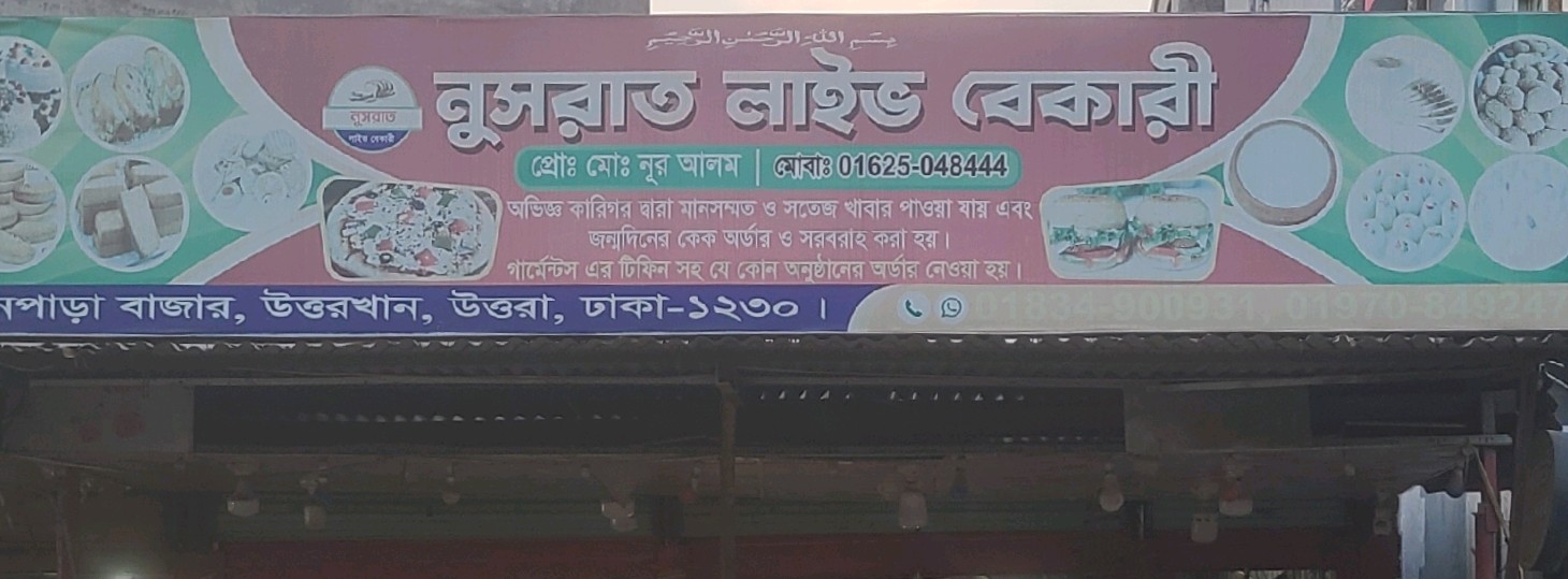 Nusrat Live Bakery offers freshly baked items and sweet treats for everyday enjoyment and special occasions. The bakery focuses on freshness, taste, and affordable options, making it a popular choice for cakes, snacks, and quick bites. Customers can enjoy a variety of baked goods prepared daily to ensure quality and flavour. Known for friendly service and consistent freshness, it has become a trusted destination for celebrations and regular bakery needs in the local community.
