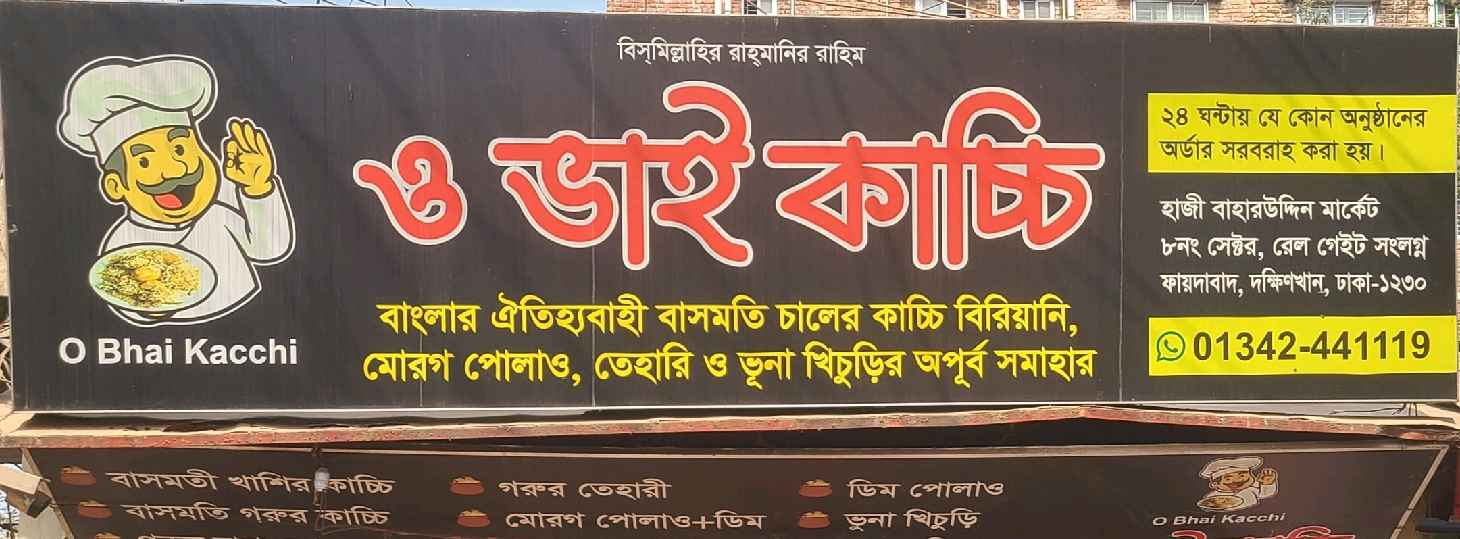 O Bhai Kacchi is a popular food destination in Uttara, well known for serving authentic and flavourful kacchi biryani prepared with care and tradition. The restaurant focuses on maintaining original taste by using fragrant basmati rice, tender marinated meat, and carefully balanced spices. Each batch is slow-cooked to preserve aroma, texture, and rich flavour. With a strong emphasis on hygiene, quality ingredients, and consistent taste, O Bhai Kacchi delivers satisfying meals for true kacchi lovers. Affordable pricing and generous portions make it a preferred choice for both dine-in and takeaway customers.