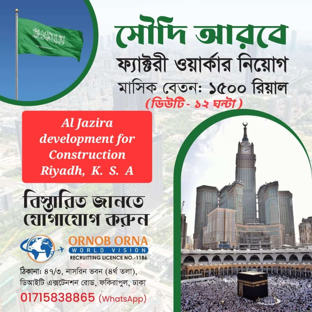 Ornob Orna World Vision is offering manpower recruitment services that includes skilled manpower recruitment services, labor recruitment services, industrial manpower recruitment services and semi skilled labor recruitment services. We are the leading service provider for Manpower & Personnel recruitment in Bangladesh.