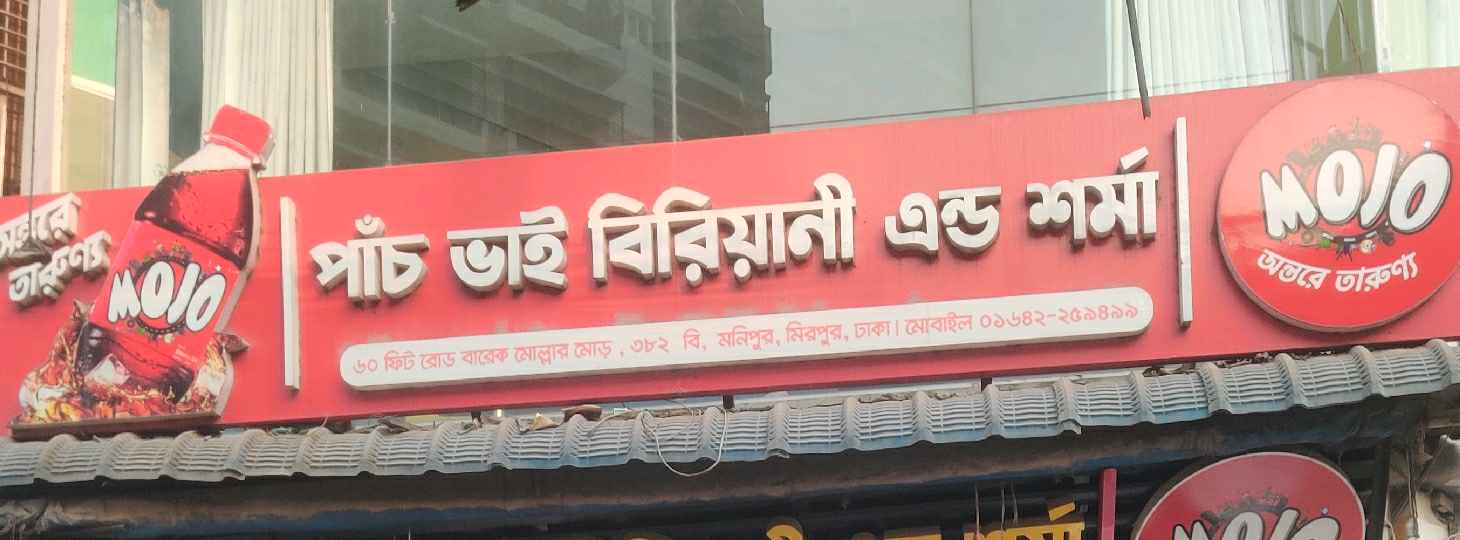 Pach Bhai Biriyani & Sharma is a popular eatery known for serving delicious and authentic biriyani along with a variety of fast-food items. The restaurant specialises in aromatic biriyani, prepared with high-quality rice, fresh spices, and tender meat, delivering rich flavours that satisfy every craving.