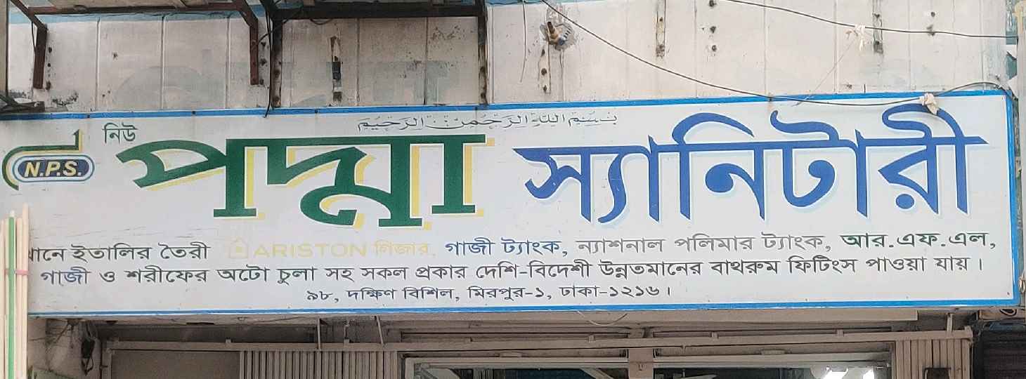 Padma Sanitary is a trusted supplier of high-quality bathroom fittings and accessories, offering both domestic and imported products. The store features Italian-made items, Ariston geysers, Gazi and National Polymer water tanks, as well as RFL Gazi and Sharif auto stoves. Customers can find a wide range of reliable and durable bathroom solutions suitable for homes, offices, and commercial spaces.