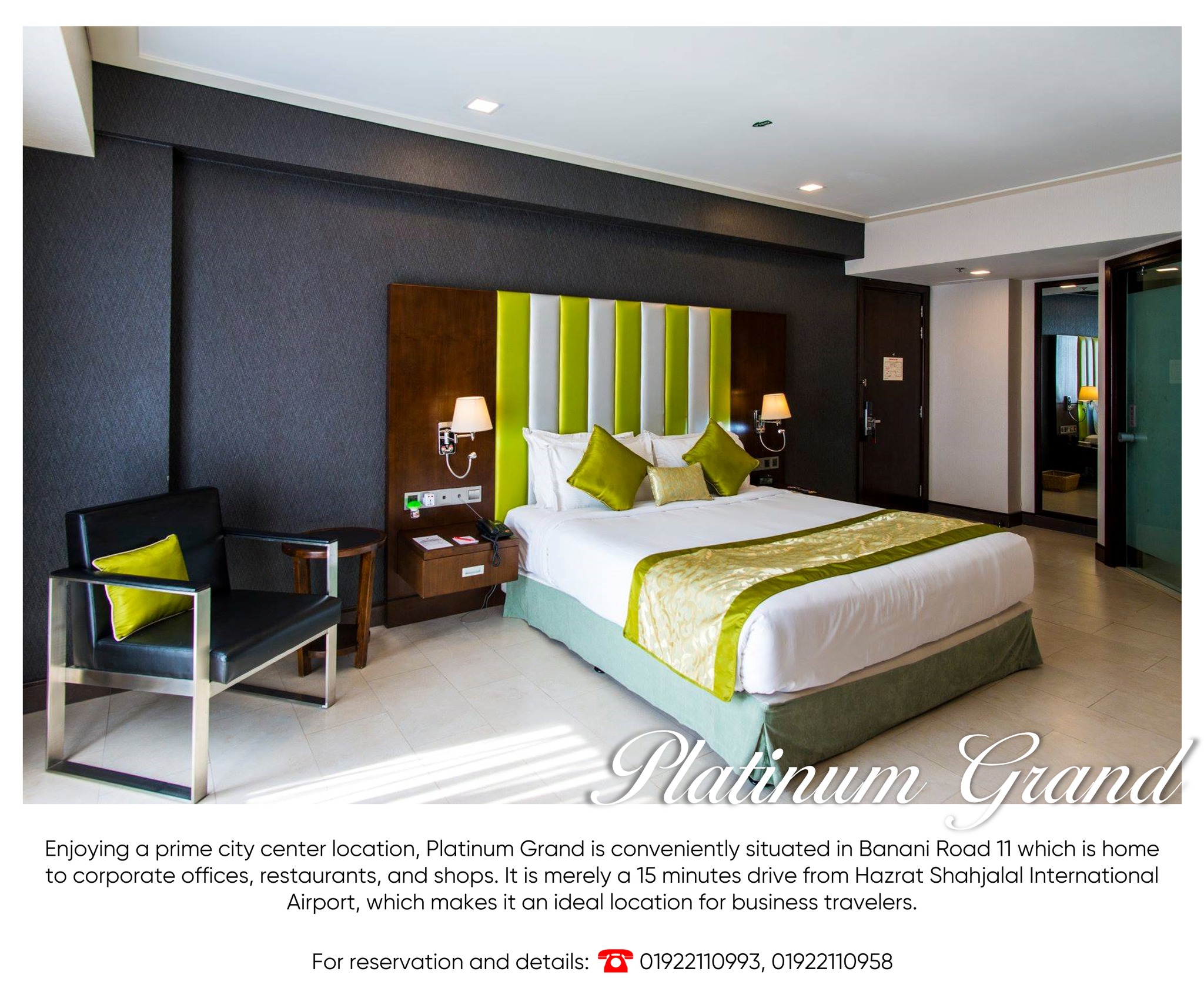 Enjoying a prime city center location, Platinum Grand is conveniently situated in Banani Road 11 which is home to corporate offices, restaurants, and shops. It is merely a 15 minutes’ drive from Hazrat Shahjalal International Airport, which makes it an ideal location for business travelers.