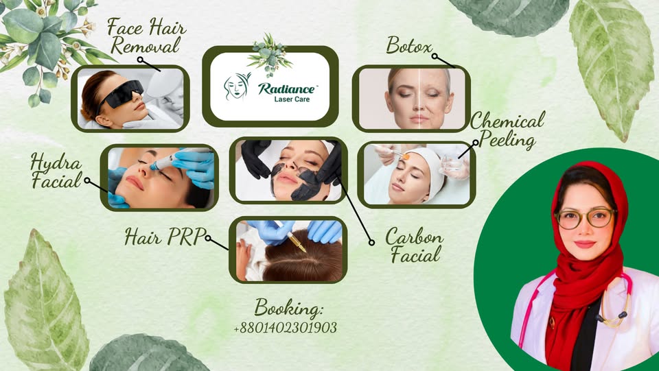 Radiance Laser Care is a premier skin and laser clinic located in the heart of Mirpur, Dhaka. Led by experienced dermatologists, we specialize in advanced skincare, laser treatments, and aesthetic dermatology. Whether you're dealing with acne, pigmentation, wrinkles, or unwanted hair, Radiance Laser Care offers personalized treatments tailored to your unique skin needs.