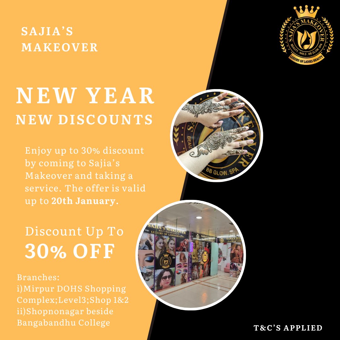 Discover Sajia's Makeover, a premier women's beauty salon located in Mirpur DOHS, Dhaka, Bangladesh. Established in August 2023, our mission is to enhance your natural beauty and boost your confidence through personalized beauty services. Our skilled professionals offer a wide range of treatments, including trendy haircuts, vibrant hair coloring, luxurious facials, rejuvenating spa treatments, bridal services, Korean BB Glow, body waxing, acrylic nails, hair treatments, mole placement and removal, tinting and coloring, HydraFacial, eyebrow extensions, manicures, and pedicures.
