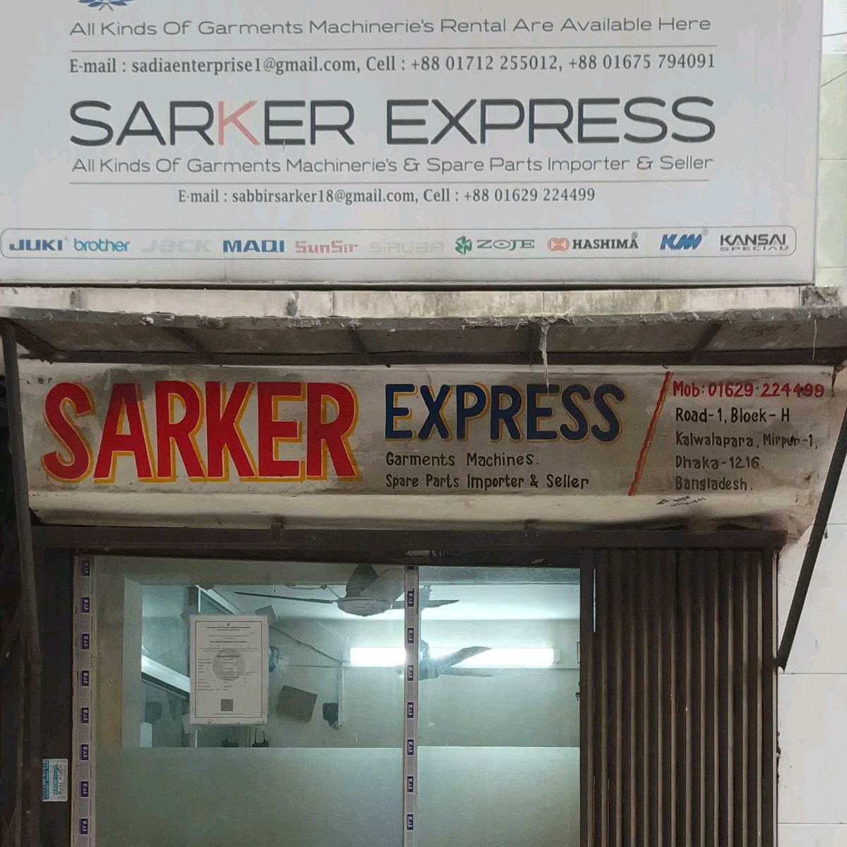 Sarker Express is a specialised business in Mirpur 1, focused on supplying garments machinery and spare parts for the apparel industry. The company imports and sells a wide range of industrial sewing machines, cutting machines, and other essential equipment used in garment production. Customers including garment factories, tailoring units, and small production businesses can access high-quality machinery and reliable spare parts to ensure smooth and efficient operations. Garments machinery suppliers play a key role in supporting the textile and apparel sector by providing durable equipment and technical solutions. Sarker Express is known for dependable products, timely supply, and professional service.