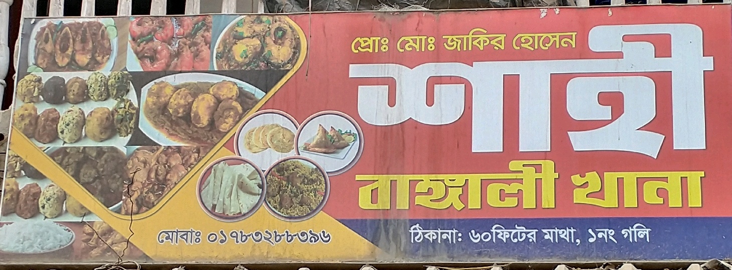 Shahi Bangali Khana in Mirpur 2 is a popular eatery offering traditional Bengali dishes made with authentic spices and fresh ingredients. The restaurant specialises in a variety of curries, biryanis, fish and meat preparations, ensuring a rich and flavorful dining experience. Customers can enjoy both dine-in and takeaway options, making it convenient for families, office-goers, and food enthusiasts. With a focus on quality, hygiene, and excellent customer service, Shahi Bangali Khana has become a trusted spot for lovers of authentic Bengali cuisine in Dhaka.