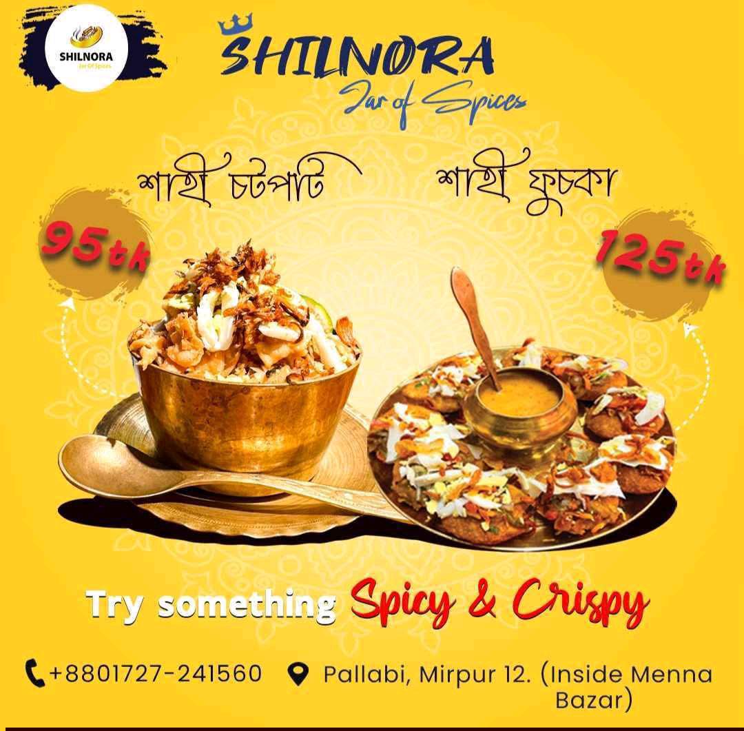Shilnora is a trendy and highly-rated restaurant in Mirpur 12, Dhaka, renowned for its fusion of authentic Bengali street food and cozy, modern ambiance. Located conveniently inside Sujat Nagar near Meena Bazar, it has become a favorite hangout for foodies in 2025 who appreciate traditional flavors served with a premium touch. Specializing in "Shahi" style delicacies, Shilnora offers a refined take on local favorites like Chotpoti, Fuchka, and aromatic Khichuri. The restaurant is praised for its Instagram-worthy interior and artistic decor, making it an ideal spot for casual dates or gatherings with friends. Why Choose Shilnora Mirpur 12? Signature Shahi Chotpoti & Fuchka: Experience their famous Shahi Chotpoti (priced around 95–115 Taka) and crispy Fuchka, featuring a perfect balance of tangy tamarind and spicy masalas. Hearty Deshi Mains: Beyond snacks, indulge in their fluffy Beef Khichuri made with aromatic Chinigura rice and rich, spicy Beef Halim. Budget-Friendly Elegance: Enjoy high-quality, hygienic food with budget-friendly options, including plain khichuri starting at just 60 Taka. Vibrant Atmosphere: A clean, spacious, and beautifully decorated environment perfect for taking photos and unwinding. Convenient Location: Situated on the 4th floor near the Pallabi Metro Station (above Meena Bazar), it is easily accessible for commuters and locals alike. Home Delivery: Can't visit? You can order your favorites through foodpanda for quick delivery across Mirpur. Location: Nur Islam Molla Avenue, House-5, Sujat Nagar (Above Meena Bazar), Mirpur 12, Dhaka. Hours: Open daily from 12:00 PM to 11:00 PM.