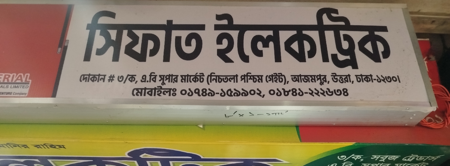 Conveniently located and community-oriented, Sifat Electric has built a strong reputation for honest service, quality products, and customer satisfaction. Its commitment to supplying a full range of electrical items makes it a trusted source for everyday electrical needs.