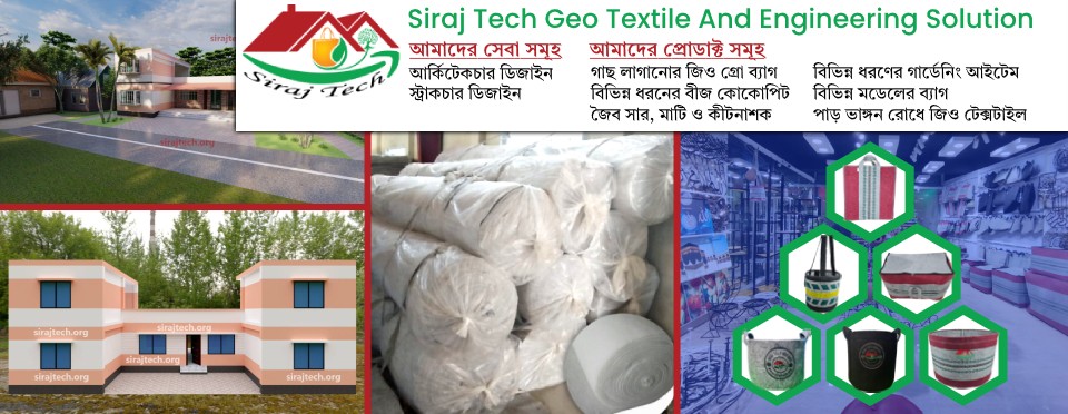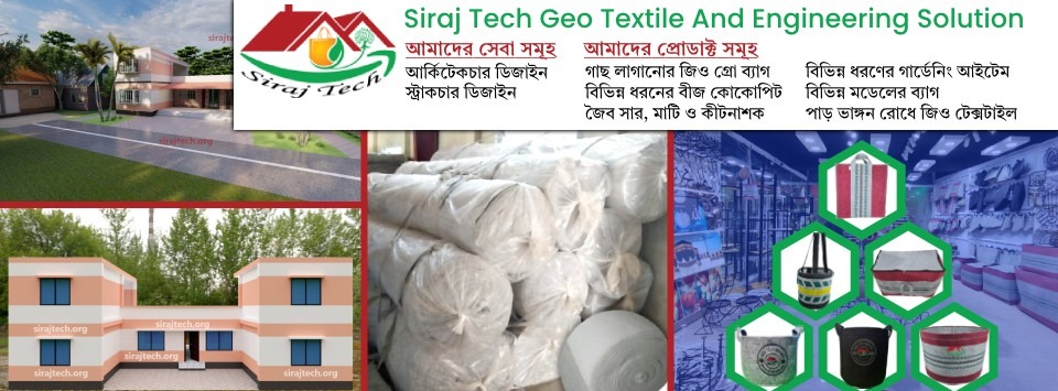 Siraj Tech Limited, located in Mirpur, Dhaka, is a prominent provider of geotextile products and civil engineering services in Bangladesh. Their offerings include high-quality geotextiles, geo bags, and gardening materials designed for various applications such as erosion control, coastal protection, and soil reinforcement. Additionally, they provide architectural and structural design services for residential, industrial, and agricultural projects, along with digital surveying solutions. Their commitment to environmental sustainability is evident through their promotion of eco-friendly products like geo grow bags and the use of geotextiles in agriculture and landscaping. For more information or to explore their product range, you can visit their official website at sirajtech.org.