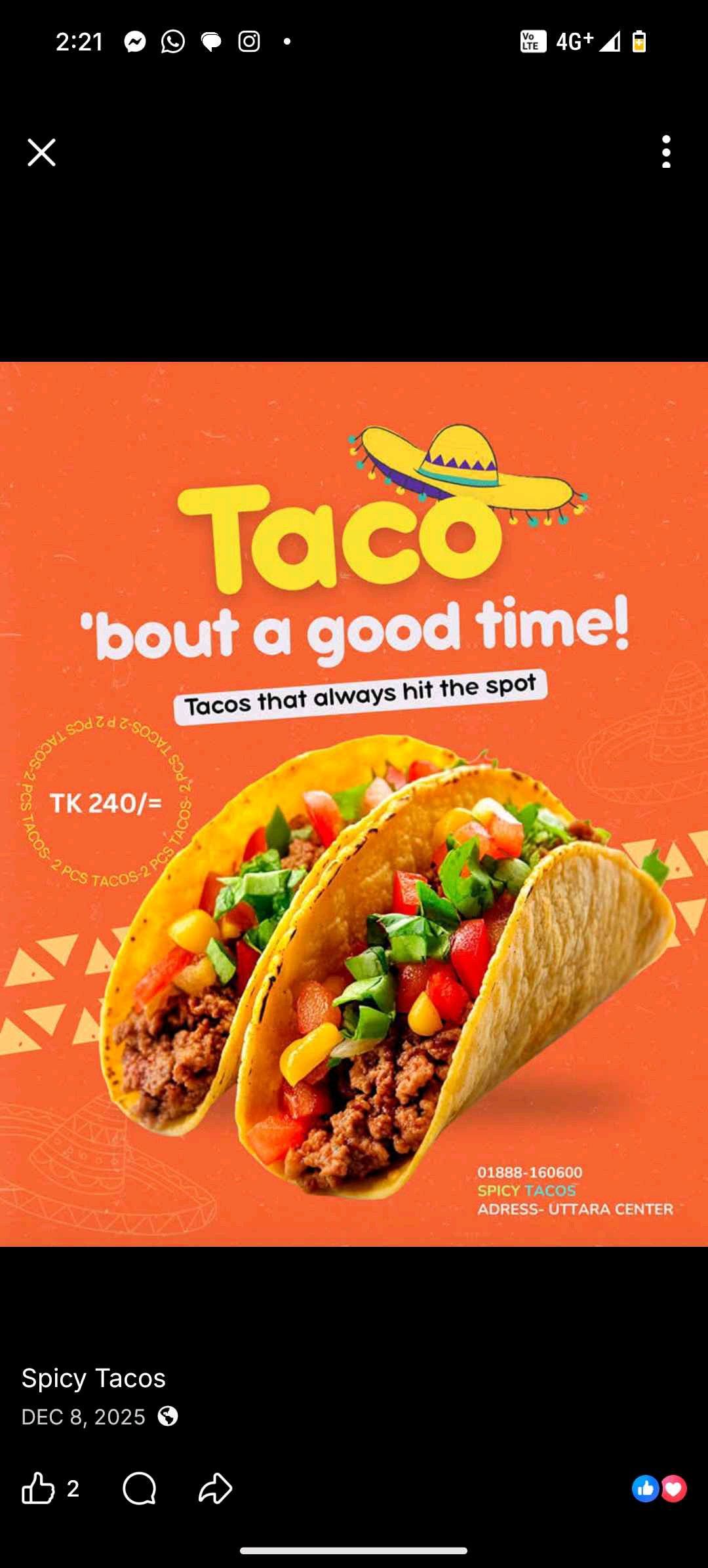 Spicy Tacos is a vibrant fast food restaurant known for serving flavorful tacos and a variety of delicious quick bites. Our menu features freshly prepared tacos, burgers, sandwiches, fries, wraps, and refreshing beverages made with quality ingredients and bold spices. We focus on taste, hygiene, and quick service to ensure a satisfying dining experience for every customer. Whether you are craving a quick snack or a full meal, we deliver fresh flavors and great value.
