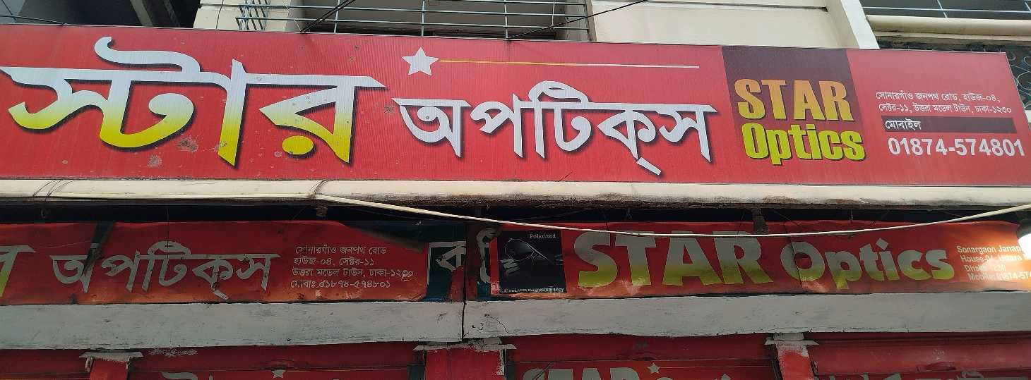 Star Optics, located in Sector 11, Uttara, is a trusted optical store offering a full range of vision care products and eyewear solutions to meet diverse needs. Known for its quality selection and professional service, the shop provides all types of optical products including prescription glasses, sunglasses, contact lenses, and protective eyewear. With a focus on clarity, comfort, and style, Star Optics combines knowledgeable eye care guidance with an appealing range of frames to help customers find the perfect fit for their lifestyle. Whether you need a routine eye test, stylish new frames, or reliable vision accessories, the experienced team at Star Optics ensures dependable support and quality products.