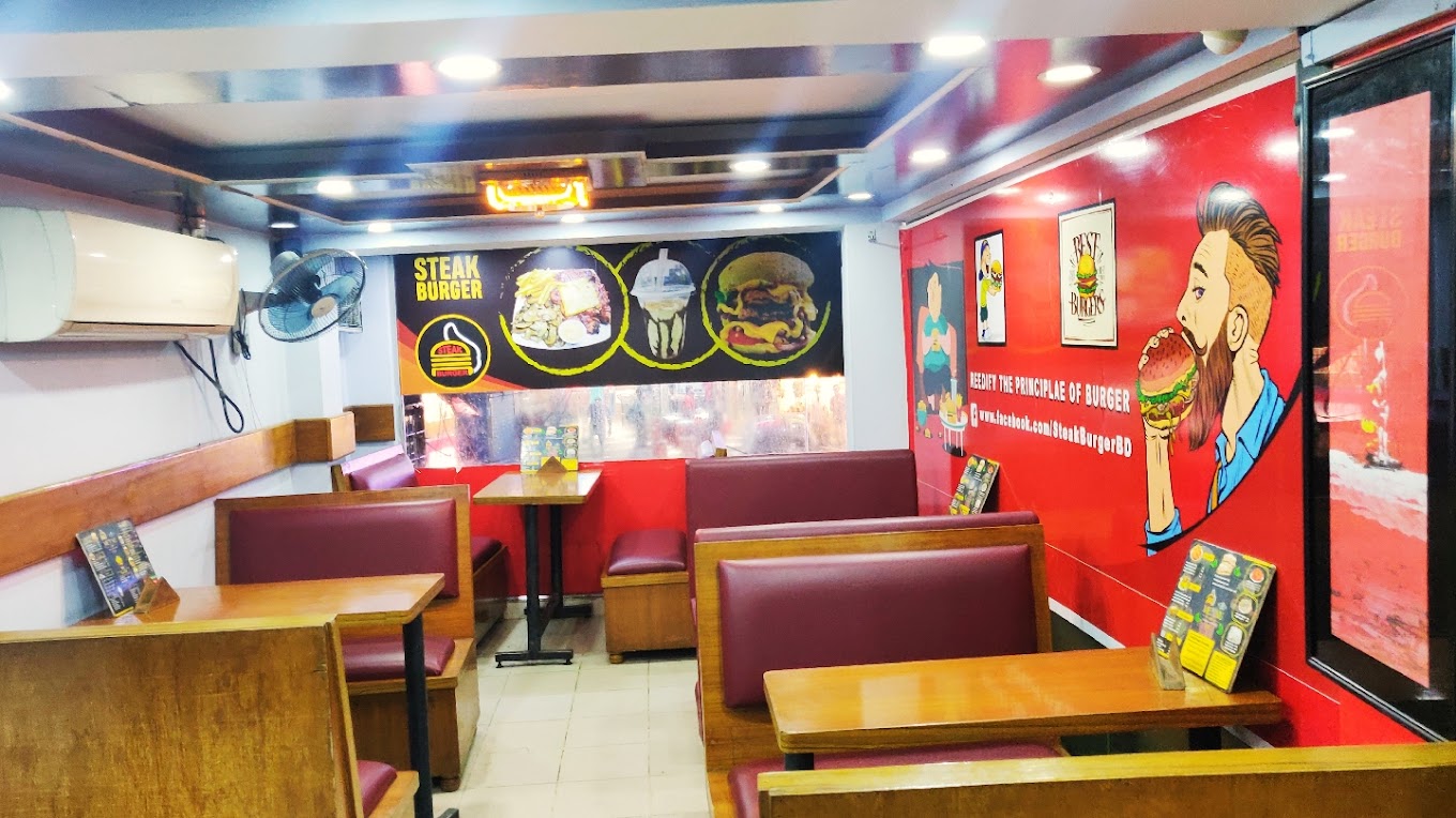 At Steak Burger, we proudly stand as the finest destination for burger enthusiasts and fast food aficionados in the vibrant heart of Dhaka. We've made it our mission to redefine the burger experience, elevating it to unparalleled heights of culinary delight. Our star attraction, the Steak Burger, is a true masterpiece - a tantalizing fusion of succulent, handcrafted eight-ounce rib-eye steak patties, perfectly seasoned and cooked to perfection. Each bite is a symphony of flavors and textures that will leave your taste buds in awe.
