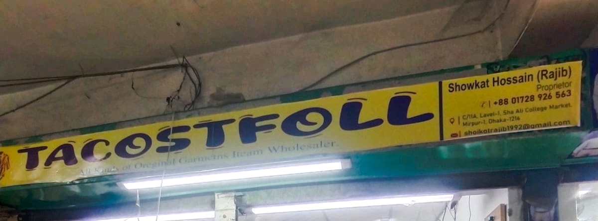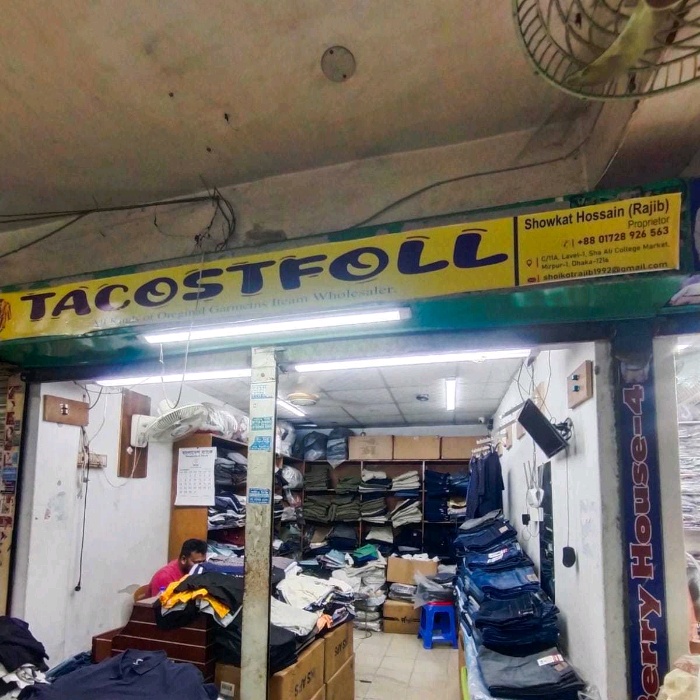 Tacostfoll in Mirpur 1 is a leading wholesale supplier of original men’s garments, offering a wide selection of shirts, T-shirts, trousers, and casual wear. Known for high-quality fabrics and authentic designs, the store caters to retailers and bulk buyers seeking stylish and durable clothing. Conveniently located in Mirpur 1, Dhaka, Tacostfoll ensures reliable stock, competitive pricing, and excellent customer service for all wholesale clients. Ideal for shop owners and bulk distributors, the store has earned a reputation for providing genuine, trend-focused garments that combine comfort, style, and affordability.